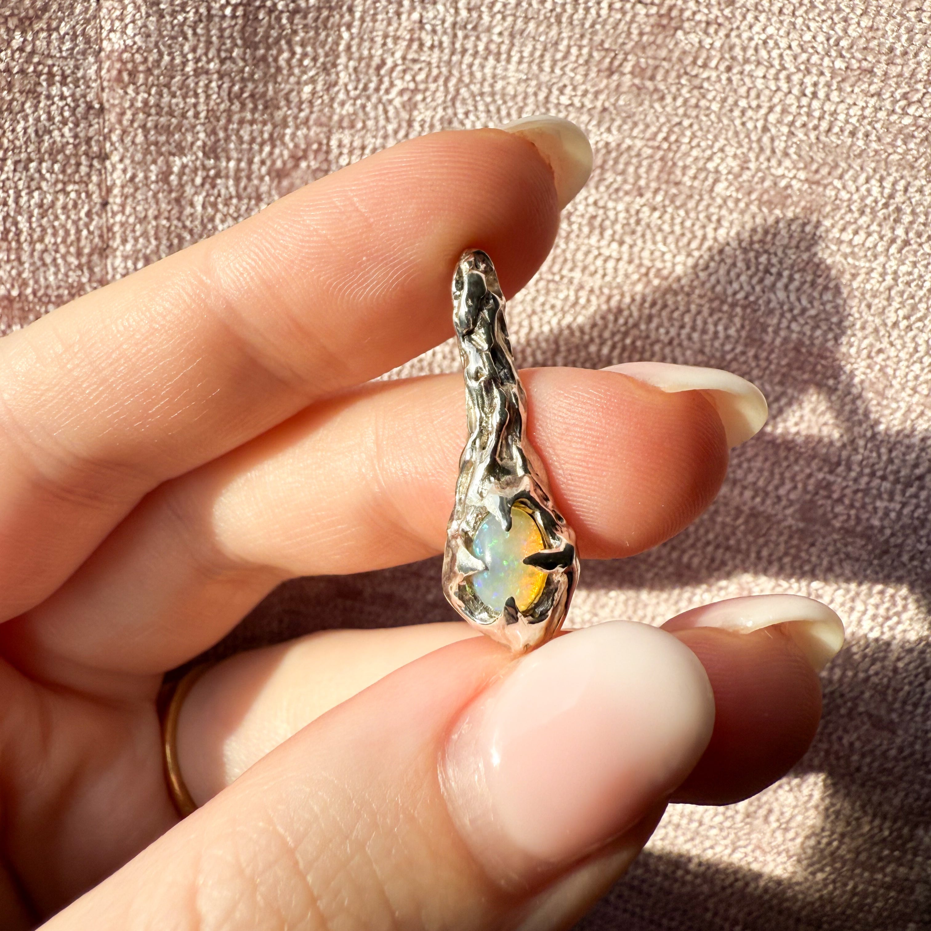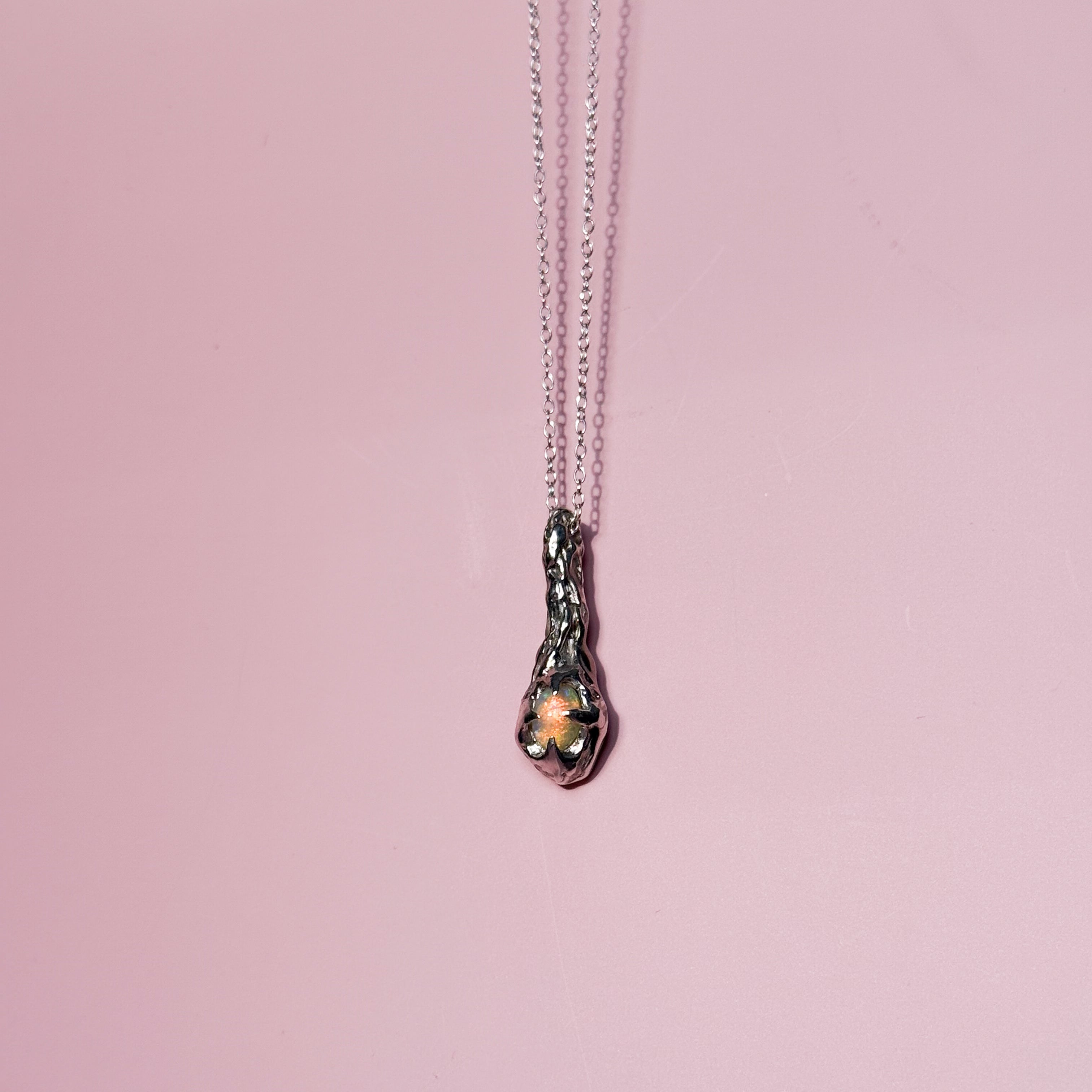 The Drift pendant is a one of a kind piece featuring an opal stone. This is a solid sterling silver pendant.