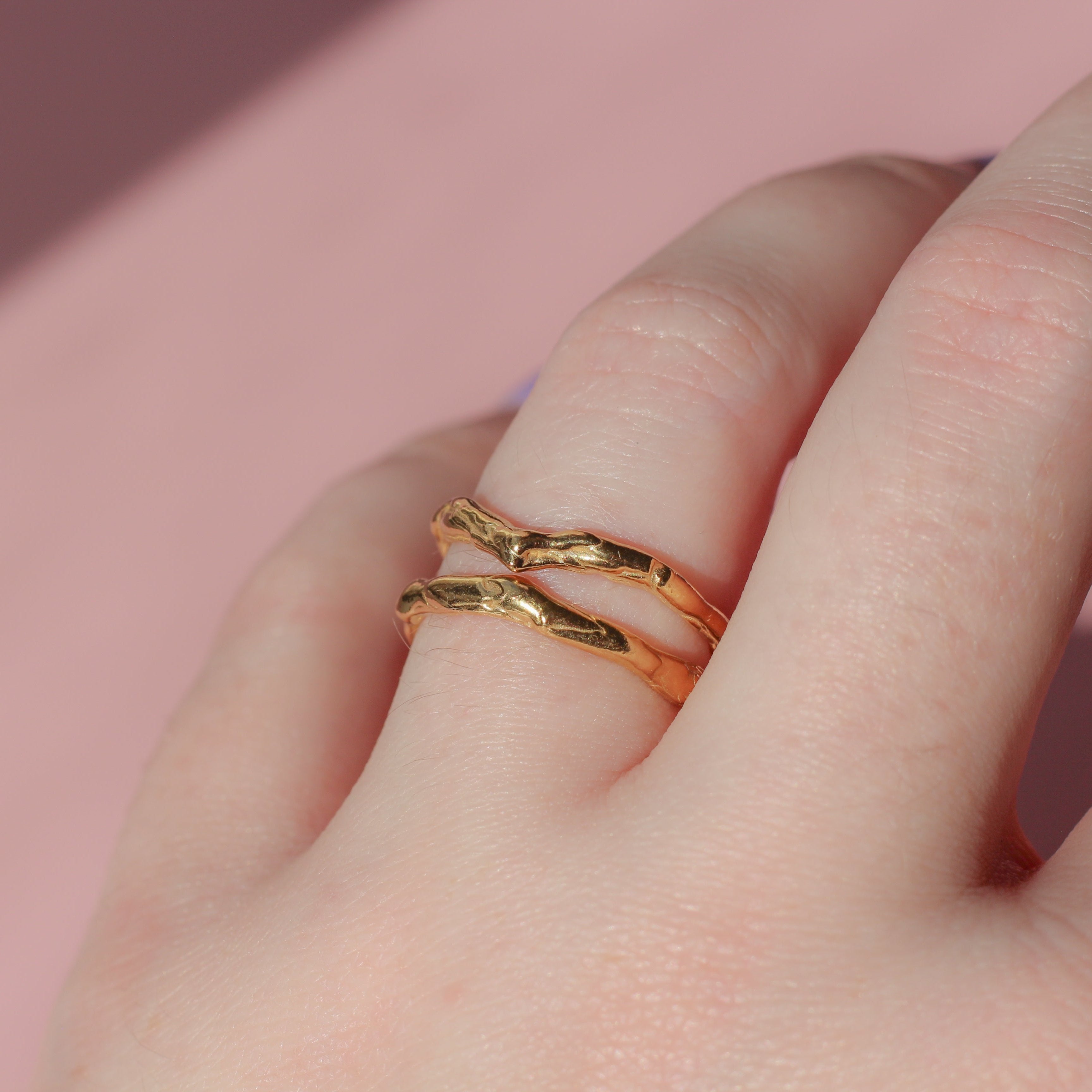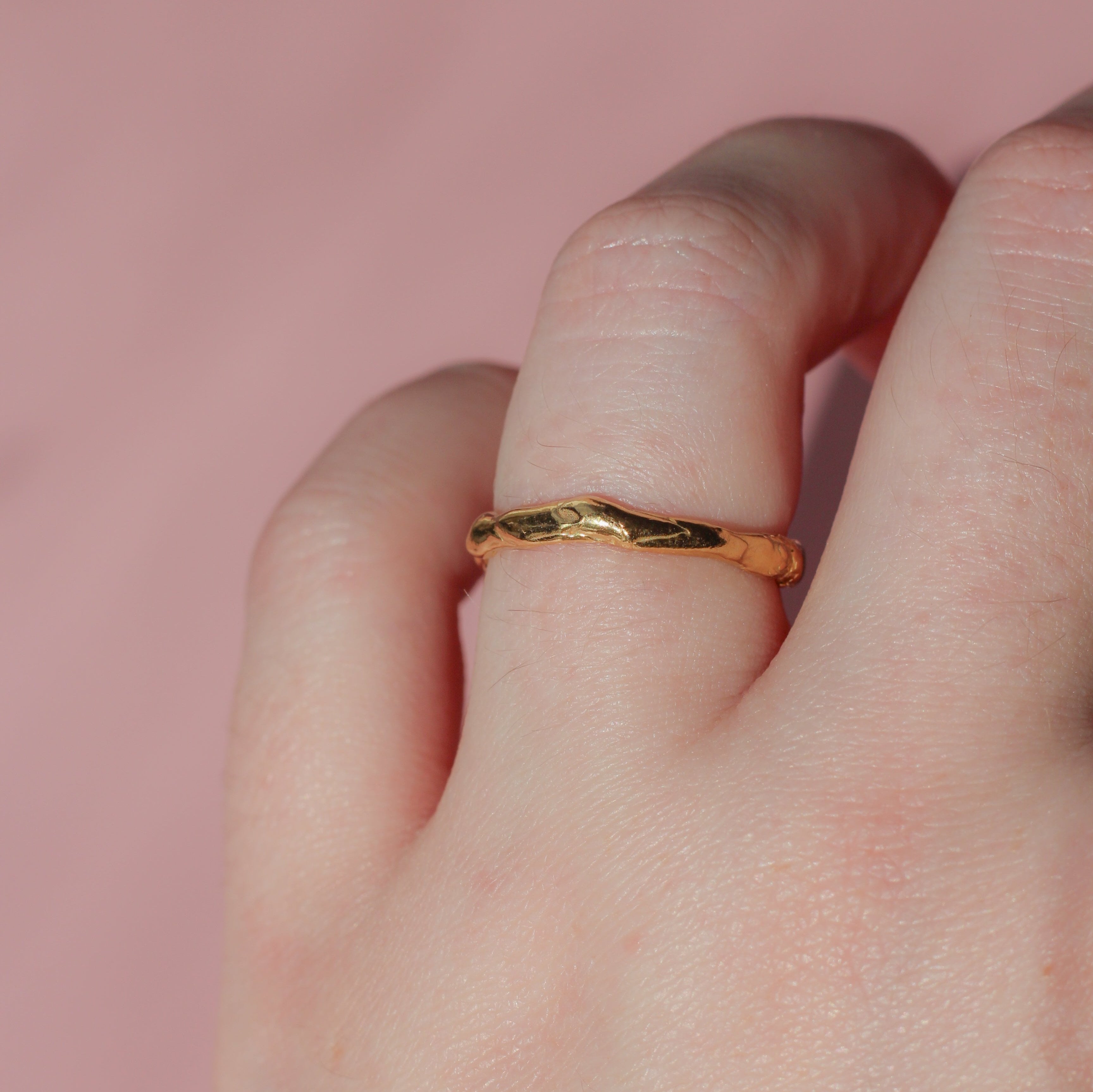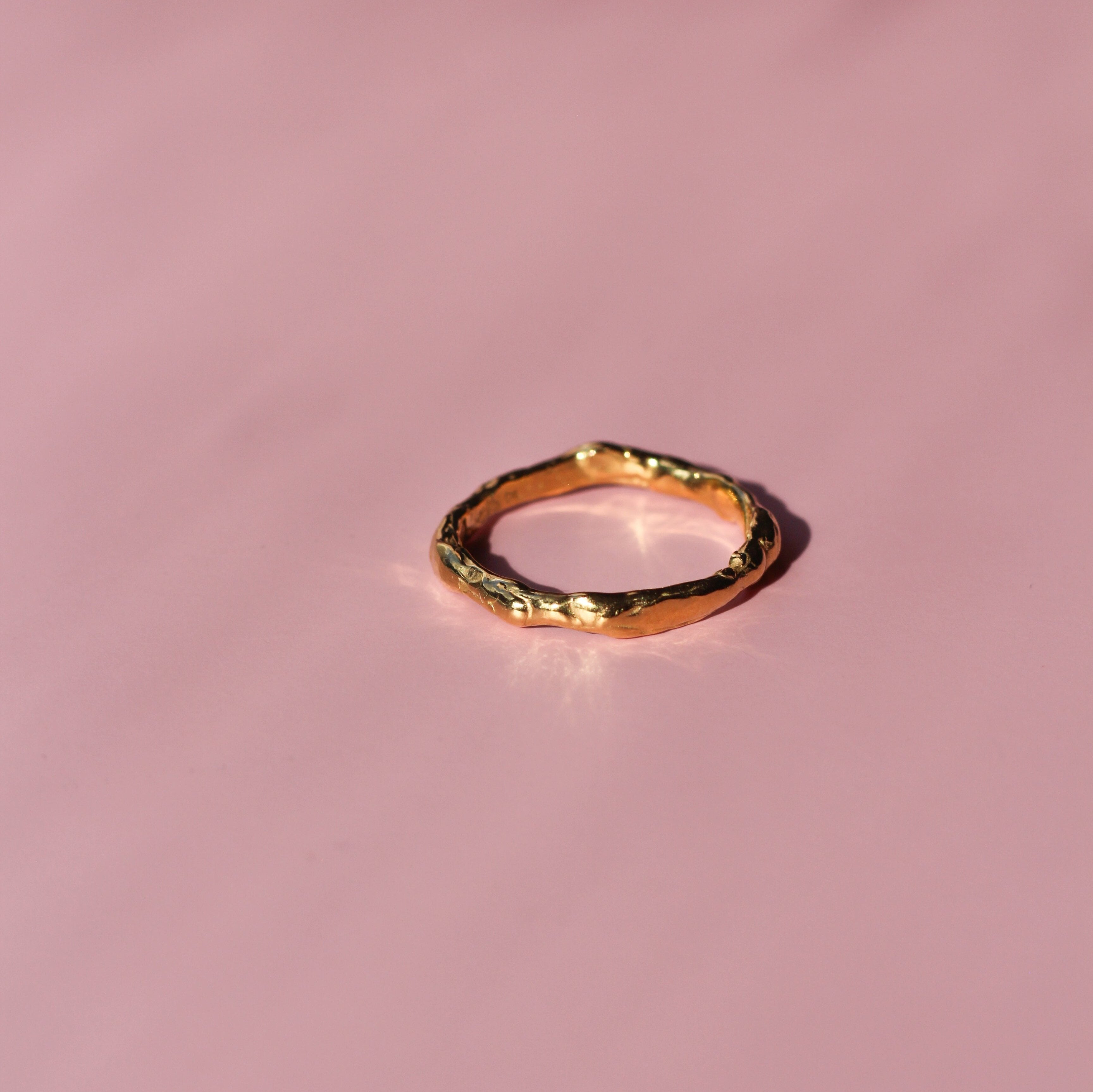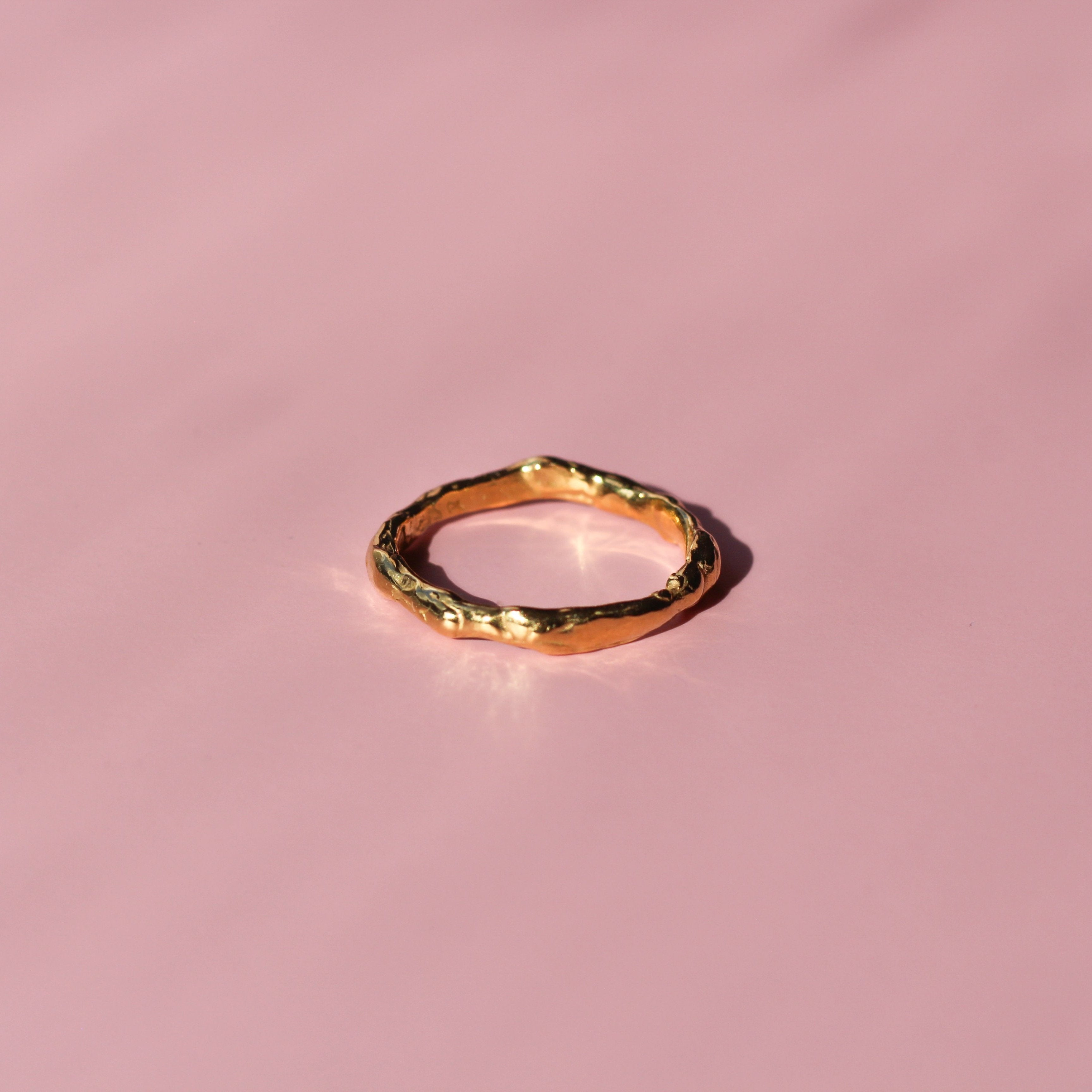 The Ripple ring features a gentle, flowing design inspired by the natural curves of water. Its delicate ripples create a subtle yet interesting look, making it the perfect minimalist piece for everyday wear or stacked with our Wave ring.